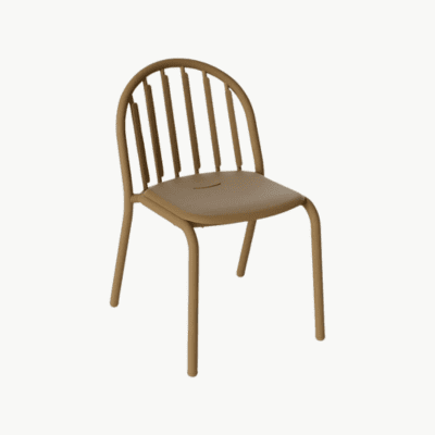 You can use furniture that feels lightweight – metal, curved edges, powder-coated colors.