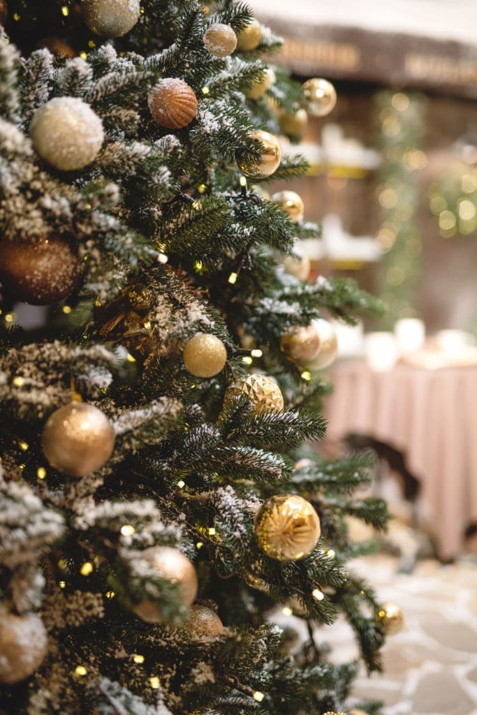 Pair shiny gold ornaments with matte finishes, cozy knits, and natural materials. Think velvet stockings, chunky knit throws, and maybe a wooden tree collar to ground all the glitz. It’s all about balance.