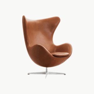 The chair is molded from a single piece of material, giving it a seamless look. The swivel base adds practicality, and it’s upholstered in a variety of fabrics and leathers. The Swan Chair embodies elegance and simplicity, making it a timeless piece.